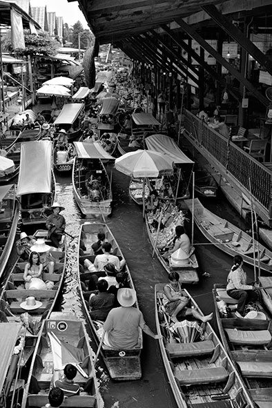 Existen varios mercados flotantes pero o de Damnoen Saduak é o máis famoso e visitado polos turistas; é unha das grandes atraccións do país e, aínda que está masificado de turistas e que perdeu a súa identidade, ao meu xuízo paga a pena visitalo, porque é todo un espectáculo fotográfico; iso si, cómpre ir cedo xa que a primeiras horas da mañá non está tan concorrido.