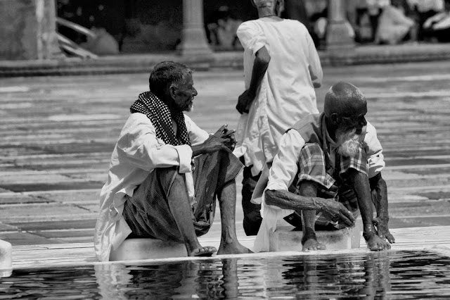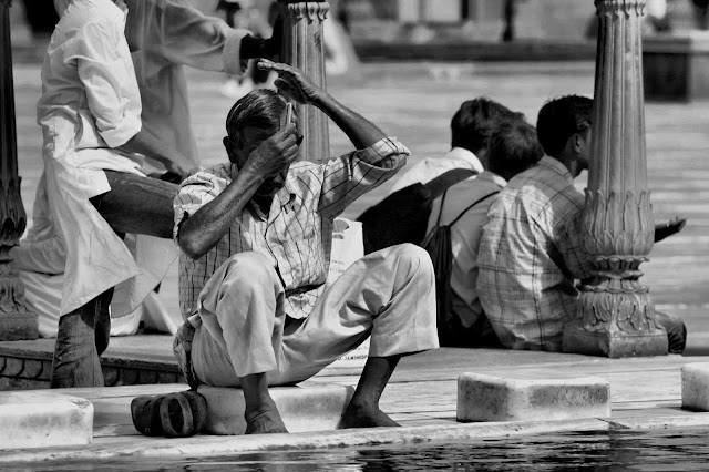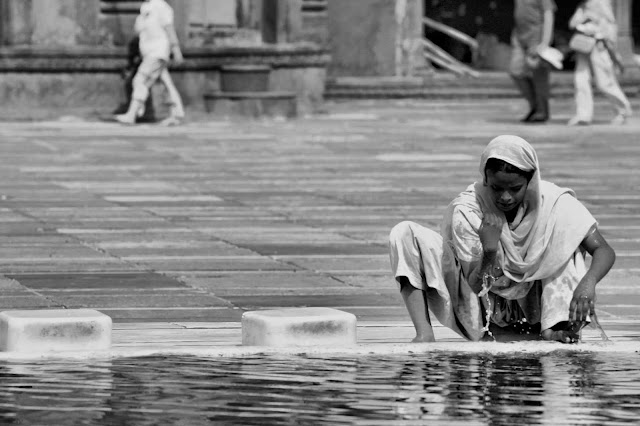 Los hindúes tienen el deber de lavarse con agua por las mañanas y también antes de entrar en los templos; de ahí que, cerca de éstos, siempre se encuentran fuentes o estanques, donde pueden hacer sus abluciones. Para poder entrar en los templos hindúes y jainistas, así como en las mezquitas, es necesario asimismo descalzarse previamente.